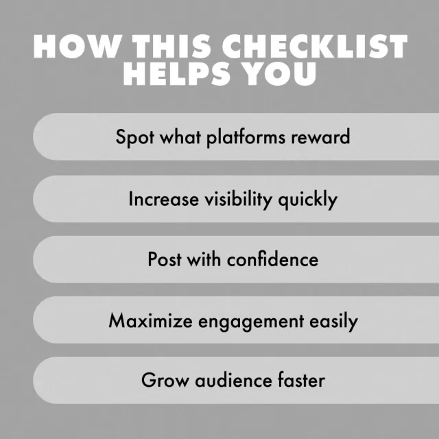 This checklist is perfect for influencers, small business owners, coaches, marketers, and anyone who wants to stop guessing how algorithms work and start using proven strategies to get seen. Whether you’re new to content creation or a seasoned pro, these insights will help you level up your reach and engagement.