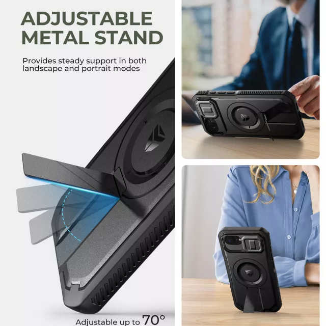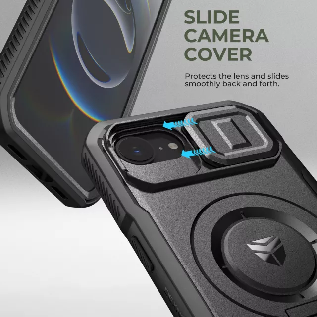 Give your iPhone 16e the protection it deserves without sacrificing style or function. This slim yet rugged MagSafe compatible case is designed to keep your phone safe from drops, scratches, and shocks while adding features that make everyday use effortless. With its sleek design, built-in slide camera cover, and sturdy adjustable kickstand, this case is the perfect balance of durability and convenience.