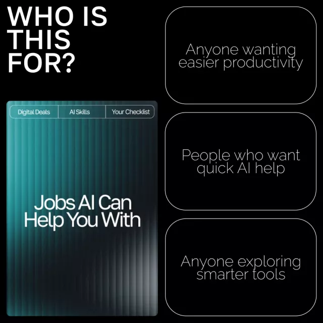 Unlock the full potential of modern automation with Jobs AI Can Help You With—a powerful digital checklist designed to show you exactly what jobs AI tools can help with. Whether you’re an entrepreneur, creator, student, or busy professional, this easy-to-use guide helps you streamline work, boost productivity, and simplify everyday tasks. With clear categories, actionable items, and beginner-friendly explanations, you’ll discover dozens of practical ways AI can support your workflow and save you hours each week.