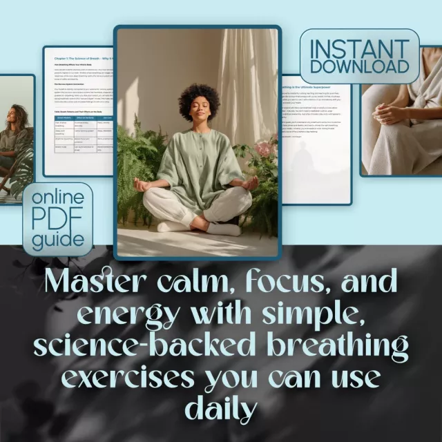 Feeling overwhelmed, scattered, or drained? Just Breathe: A Simple Guide to Calm, Focus & Energy Through Breathing Exercises is your go-to digital download to reset your mind and body through the power of breathing. Whether you’re new to breathwork or ready to deepen your practice, this guide takes you step-by-step through proven breathing exercise techniques that restore balance, build focus, and energize you from within—no experience or equipment needed. Easy to follow, beautifully organized, and instantly downloadable, this breathing exercise guide is your daily companion to wellness, focus, and a more peaceful life.