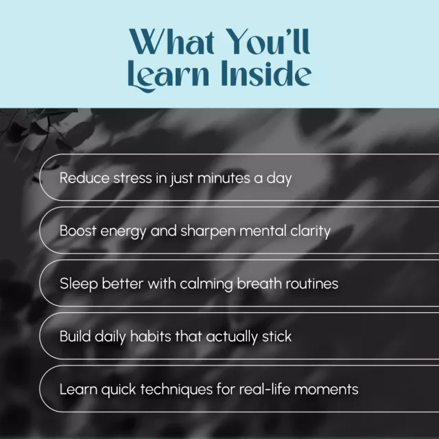 Unlike other resources, Just Breathe combines science-backed insight, beginner-friendly techniques, and real-life application prompts in a clear, practical format. You’re not just learning about breathing exercises—you’re learning how and when to use them effectively.