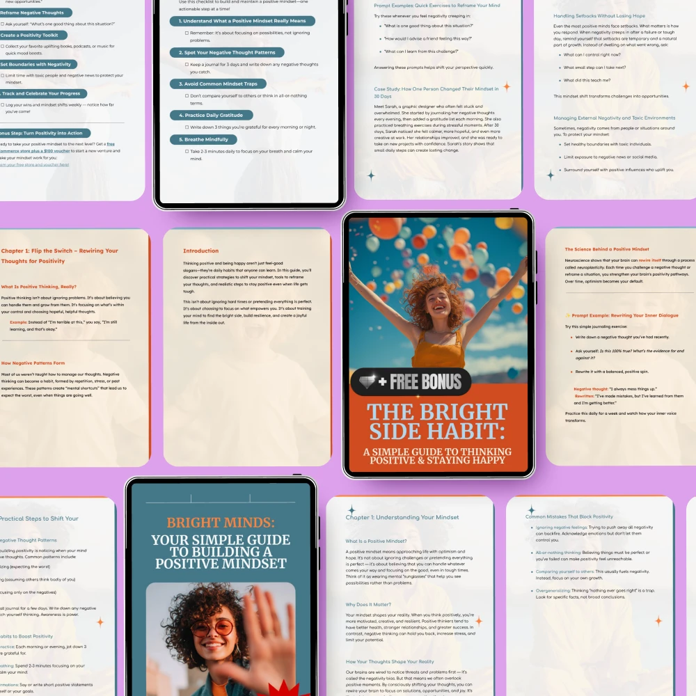Wow, what a bundle! I've been feeling down lately and needed something to lift me up. This digital collection did just that. It's like having an empowering coach in my pocket, ready to guide me towards positivity whenever I need it. The Bright Side Habit guide was particularly helpful - its step-by-step approach made building positive habits feel achievable rather than overwhelming. Each day, I found myself looking forward to implementing the new habit of the day and could genuinely feel my mood improving as a result.