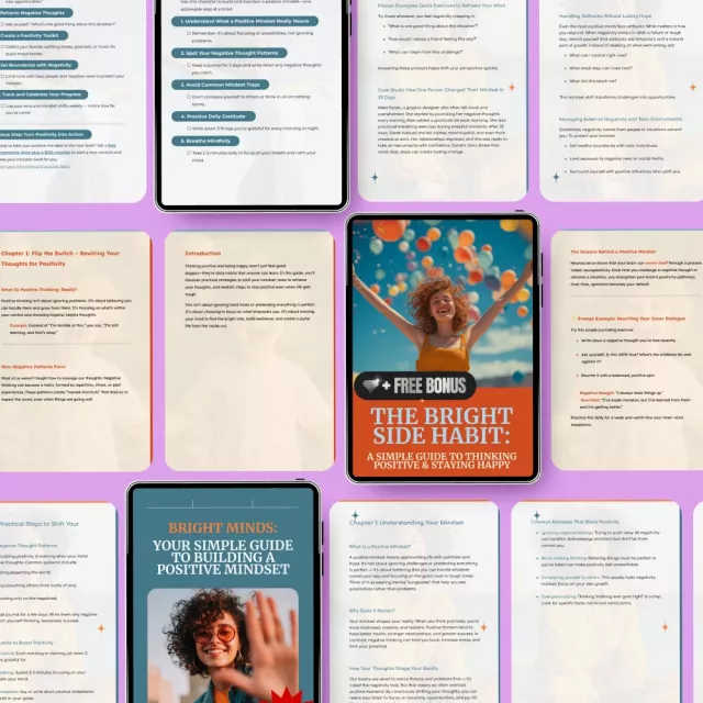 What a treasure this bundle is! I've been searching for something to help me stay positive and upbeat, and boy did this deliver. The guides are simple yet powerful, offering practical tips that have made maintaining my positivity so much easier. It's like having a personal cheerleader in digital form. My favorite part? Those quotes—they're just the right length, packing a punch of inspiration whenever I need it most.