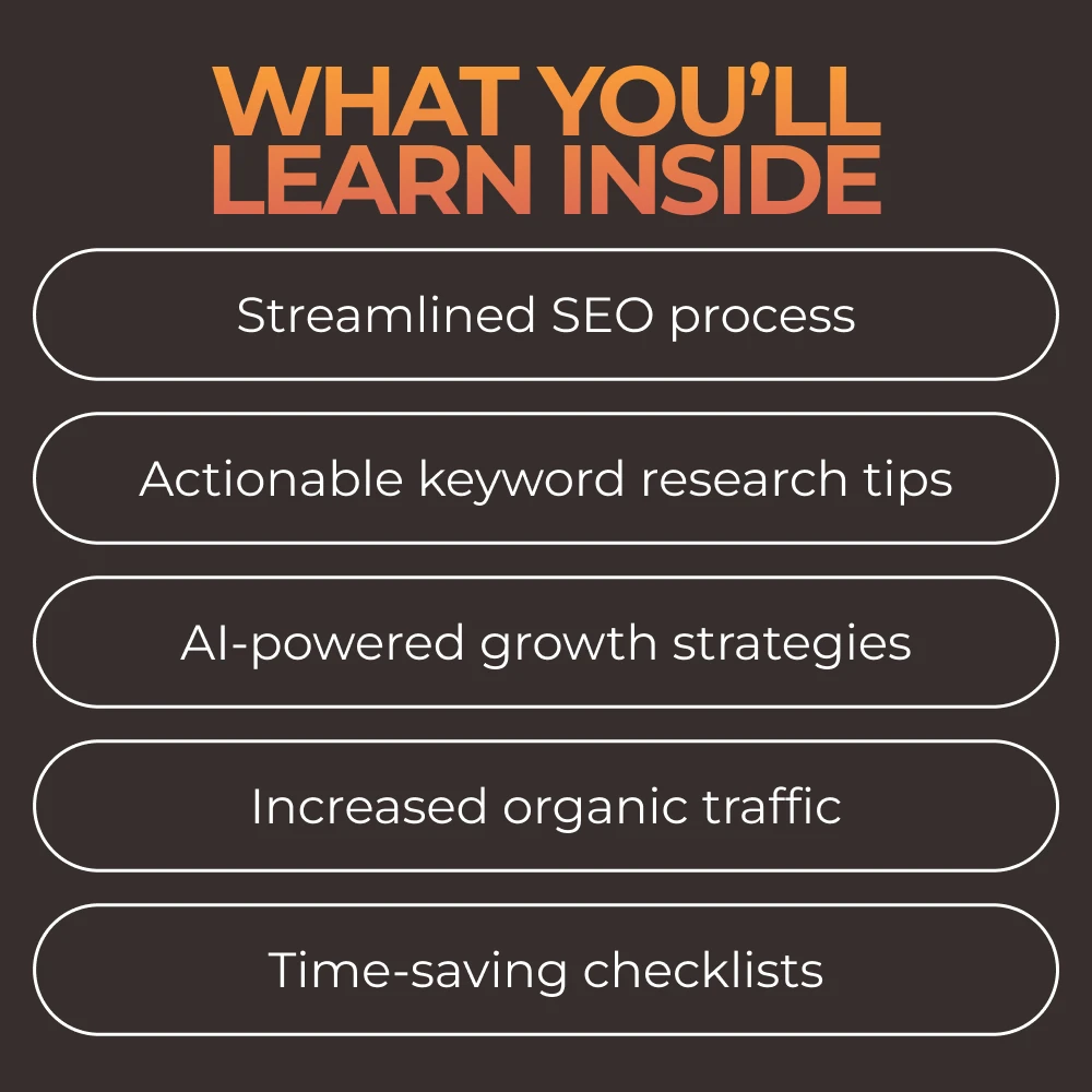• Save Time: Eliminate the guesswork with actionable guides and checklists that simplify keyword research.