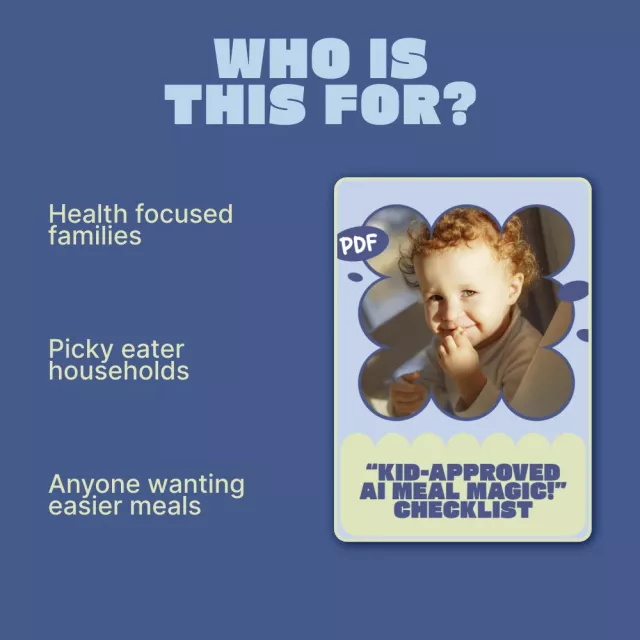 If you’re ready to stress less, waste less food, and watch your kids enjoy meals again, Kid-Approved AI Meal Magic! is your new secret weapon. Download the checklist today and start creating meals your kids will actually ask for.