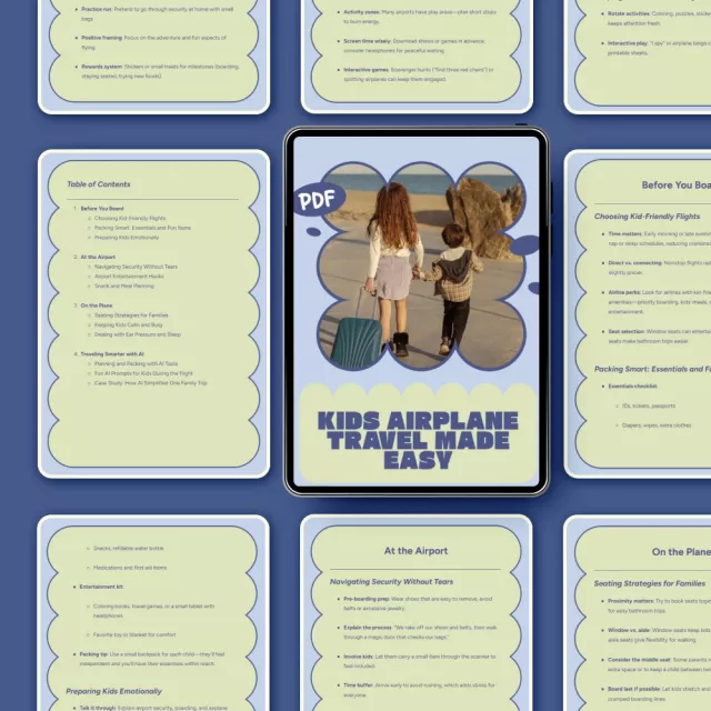 Flying with kids doesn’t have to mean chaos, meltdowns, or constant stress. Kids Airplane Travel Made Easy is a practical, parent-approved digital guide designed to help you feel confident and prepared from the moment you book your tickets to the moment you land. Whether this is your child’s first flight or your fifth family trip, this guide gives you realistic strategies, smart planning tools, and modern solutions that truly work. Packed with actionable advice and kids airplane travel tips, it’s like having a calm, experienced travel buddy right in your pocket.
