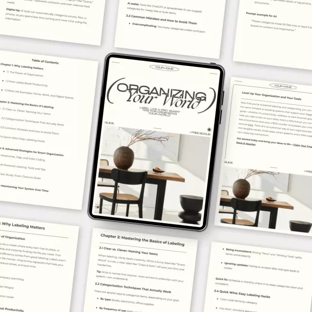 Discover the ultimate guide to effortless organization with Label Like a Pro: Smart Tips for Organizing Your World. This digital download is your step-by-step roadmap to creating order in every corner of your life—whether it’s your home office, kitchen, digital files, or workspace. Packed with expert tips for labeling and categorizing items, this guide helps you label smarter, declutter faster, and maintain organization that actually lasts.