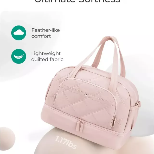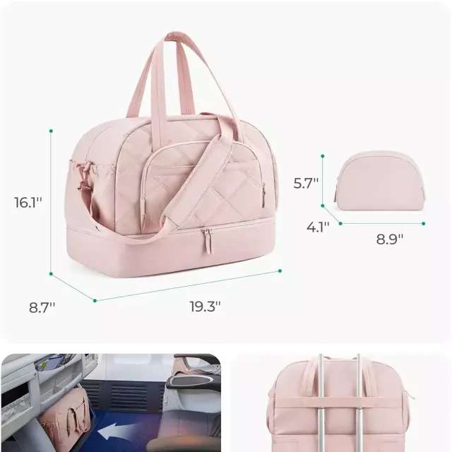 This bag is thoughtfully designed with multiple compartments to keep your essentials neatly stored. A spacious shoe compartment at the bottom fits up to two pairs of shoes, while the included toiletry bag helps you stay organized on the go. Measuring 19.3″L x 8.7″W x 16.1″H, it meets most carry-on size requirements and easily fits under airplane seats. Quick-access zip pockets let you grab your passport, phone, or tickets in seconds. Plus, its durable yet lightweight fabric (only 1.17 lbs) makes carrying it effortless.