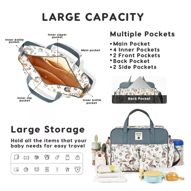 • Spacious Interior: Ample room to fit diapers, bottles, wipes, clothes, toys, and more without feeling bulky.