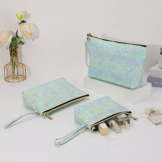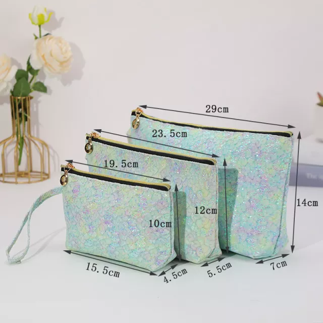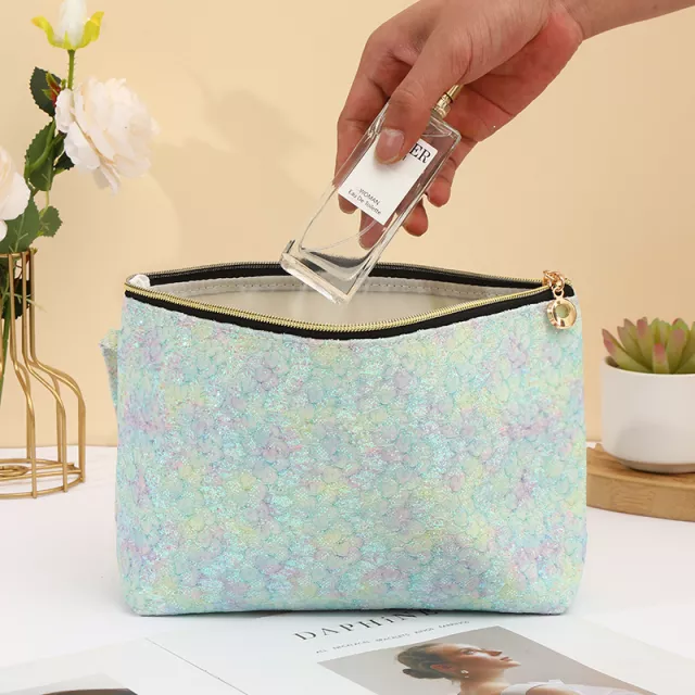 Unlike ordinary toiletry pouches, this bag combines style, capacity, and protection. The sequin detailing makes it eye-catching, while the generous storage space means you won’t have to leave anything behind. Its sturdy PU material keeps spills contained, and the sleek zipper closure ensures peace of mind while on the go.