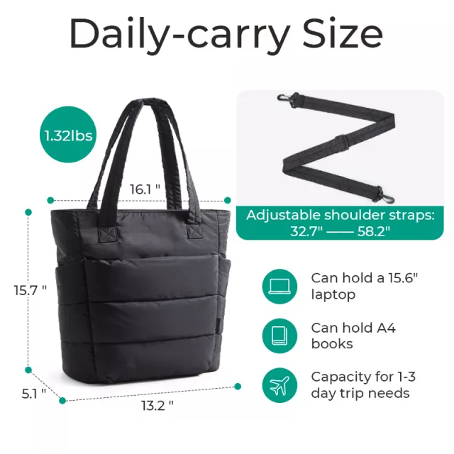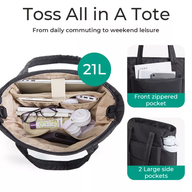 Crafted from soft, high-quality fabric, this tote is both stylish and practical. Its puffer design adds a trendy touch while also protecting your laptop and other valuables. The water-repellent finish means sudden rain showers are no problem—simply wipe it clean and carry on. Built to last, it’s the kind of bag you’ll reach for every single day.