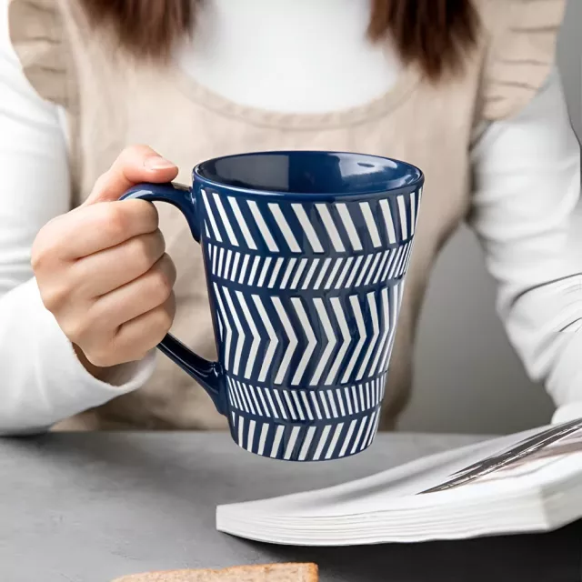Unlike ordinary cups, this mug combines functionality with timeless style. The extra-large capacity means fewer refills, while the open design allows your drink to cool to the perfect temperature naturally. Its eco-friendly ceramic construction makes it a sustainable choice for conscious living, while the elegant blue stripes bring a touch of personality and charm to your drinkware.