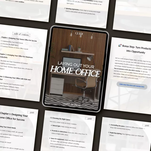 Transform your workspace into a hub of productivity and comfort with Laying Out Your Home Office — a complete digital guide that shows you how to layout a home office with both efficiency and elegance in mind. Whether you’re setting up a small corner or an entire spare room, this guide walks you through every step to create a space that helps you focus, stay organized, and love where you work. Designed for freelancers, entrepreneurs, and remote professionals, this downloadable guide makes the process simple, inspiring, and practical.