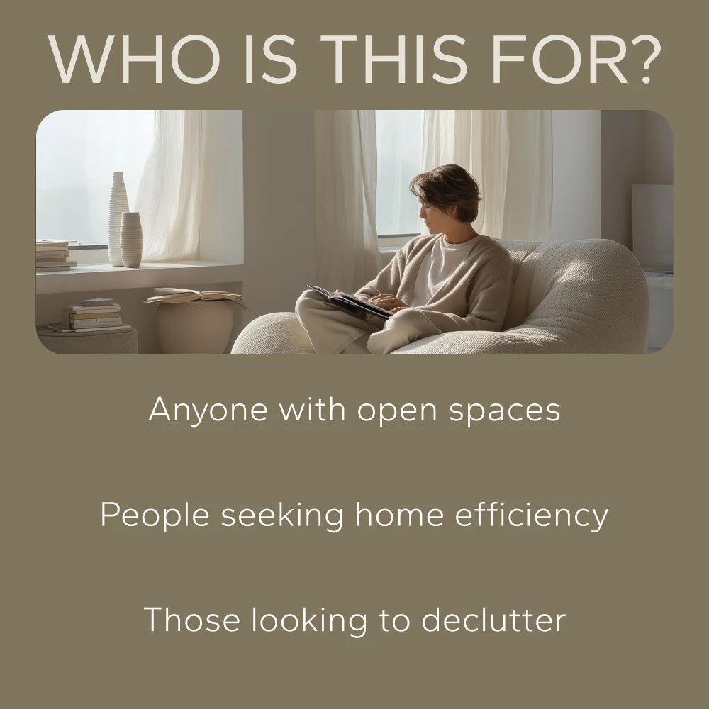 Unlike other generic design guides, this 3-in-1 bundle is specifically tailored to open living spaces. It combines practical, actionable tips with a focus on maximizing space and enhancing flow. Whether you’re working with a cramped apartment or a sprawling room, this bundle gives you personalized strategies to make your home feel open, inviting, and functional.