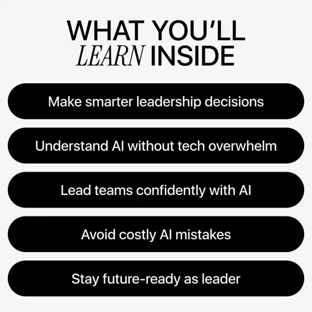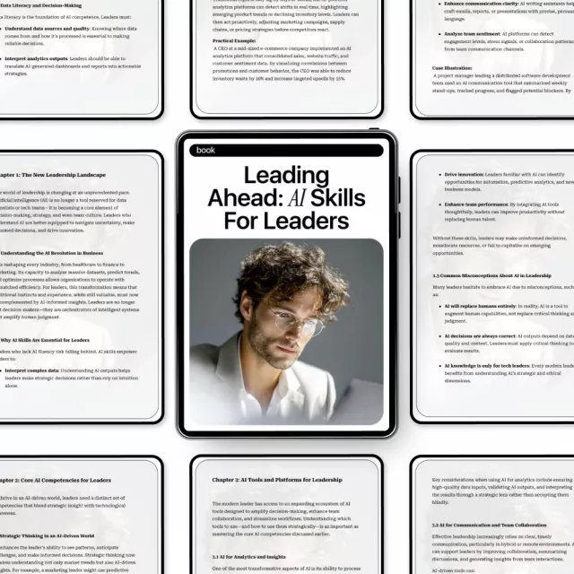 Unlike generic AI guides, Leading Ahead: AI Skills for Leaders is written specifically for leadership contexts. It focuses on mindset, strategy, ethics, and people management—not just tools. The content is practical, leadership-focused, and designed for immediate application.