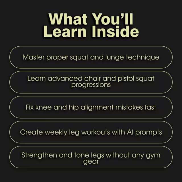 Unlike generic workout PDFs, this guide combines expert exercise instructions with cutting-edge AI prompts, making your leg day workouts at home smarter, safer, and more effective. You’ll learn how to structure your sessions, avoid common pitfalls, and stay motivated long-term—all from the comfort of your own home.