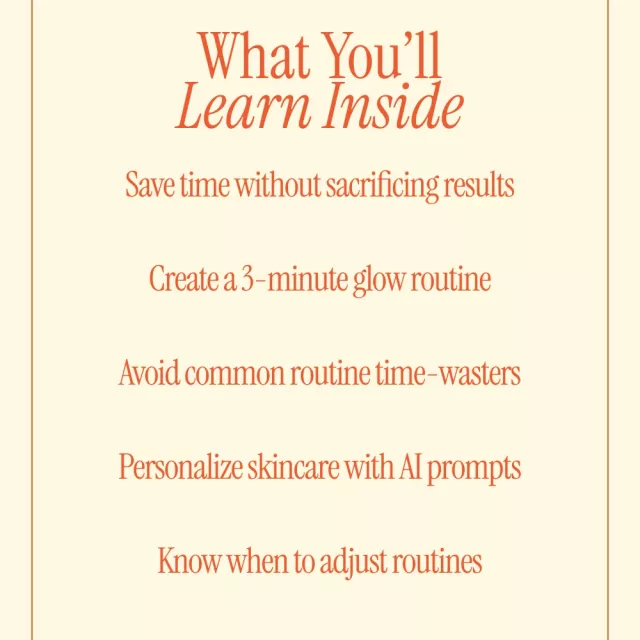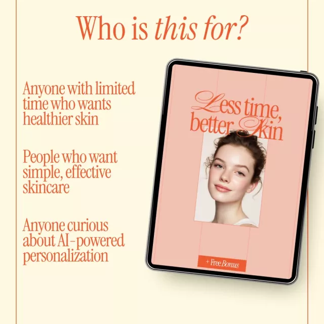 If your skincare goals keep getting pushed aside by a busy schedule, Less Time, Better Skin was created for you. This practical, easy-to-follow digital guide shows you how to achieve visible results without long, complicated routines. Built around proven principles and real-life examples, this guide helps you streamline your approach and finally feel confident that your skincare routine fits your life. Whether you’re overwhelmed by too many products or simply short on time, this guide focuses on what truly matters.
