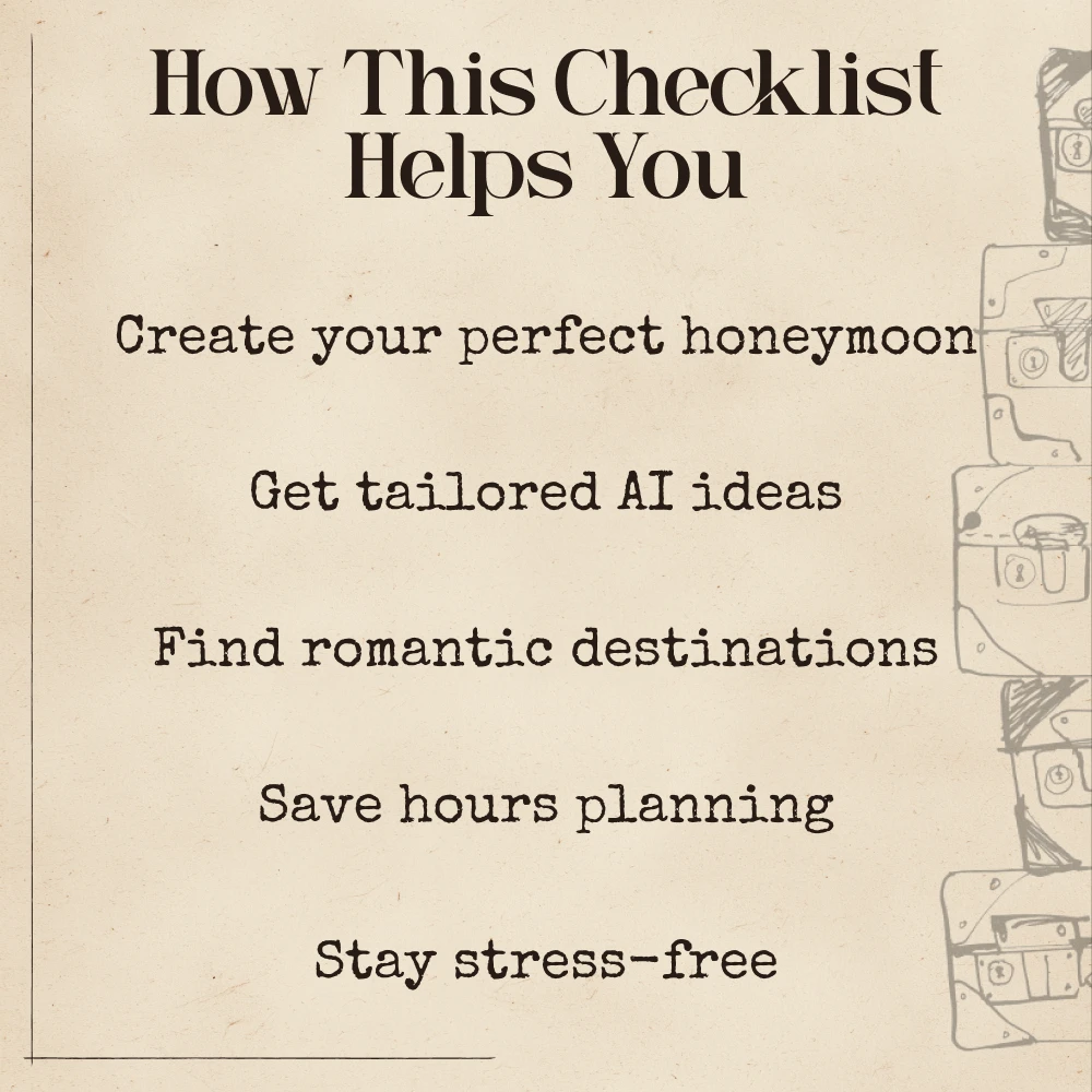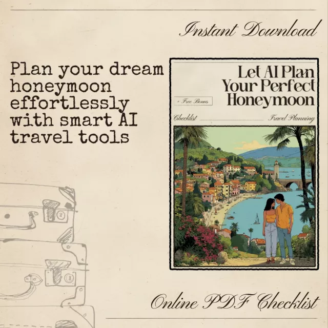 Say goodbye to hours of research and hello to effortless romance. Let AI Plan Your Perfect Honeymoon is your ultimate digital checklist for using ai that plans a perfect honeymoon — from choosing destinations to creating a stress-free itinerary. This guide helps couples turn AI insights into personalized travel plans that feel curated, romantic, and perfectly you.