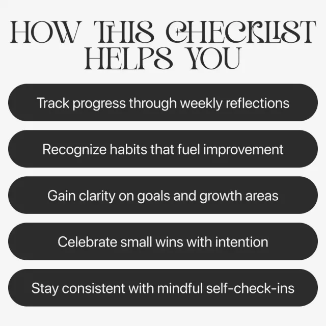 Perfect for anyone striving to grow mindfully, from habit builders to goal setters and lifelong learners. This checklist is made for people who want real progress without overcomplicating the process—a clear, structured way to see how far you’ve come and where to focus next.