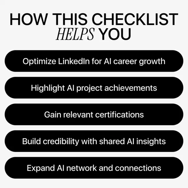 This guide is perfect for AI professionals, data analysts, automation specialists, and anyone looking to show off their AI skills on LinkedIn. Whether you’re seeking new opportunities, aiming for career growth, or wanting to build your AI personal brand, this digital resource equips you with the tools to succeed.