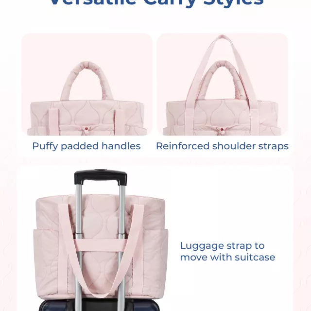 Crafted from high-density quilted material, this tote is both strong and feather-light, making it easy to carry without weighing you down. Reinforced stitching and sturdy handles ensure it stands up to daily use. With dual handles, you can wear it comfortably as a handbag or sling it over your shoulder. Plus, the built-in luggage strap lets you slide it over your suitcase handle for effortless travel.