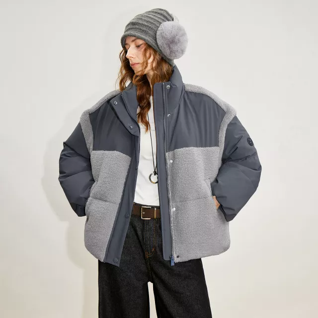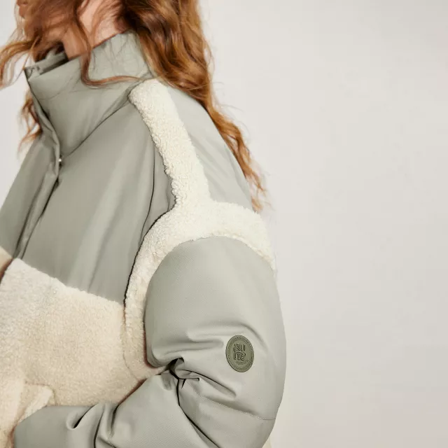 This jacket is filled with high-quality white duck down for excellent insulation while staying surprisingly lightweight. The outer layer uses durable oxford fabric combined with soft fleece spliced panels for added warmth and texture. The result is a refined winter coat that works just as well in the office as it does outside.