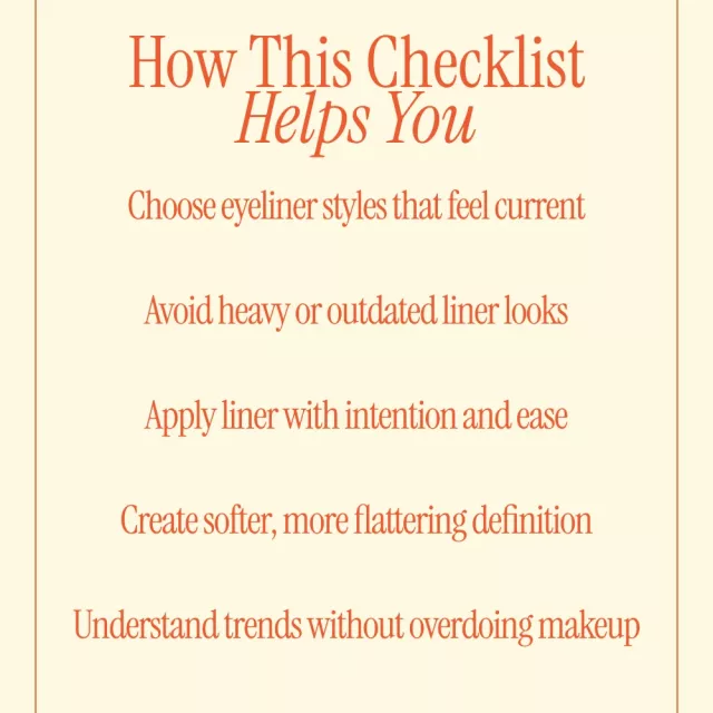 This checklist is ideal for makeup lovers, beauty beginners, content creators, or professionals who want a clear answer to what eyeliner styles are popular now without digging through endless videos or trend reports. It’s especially helpful if you love clean, modern makeup but still want room for creativity.