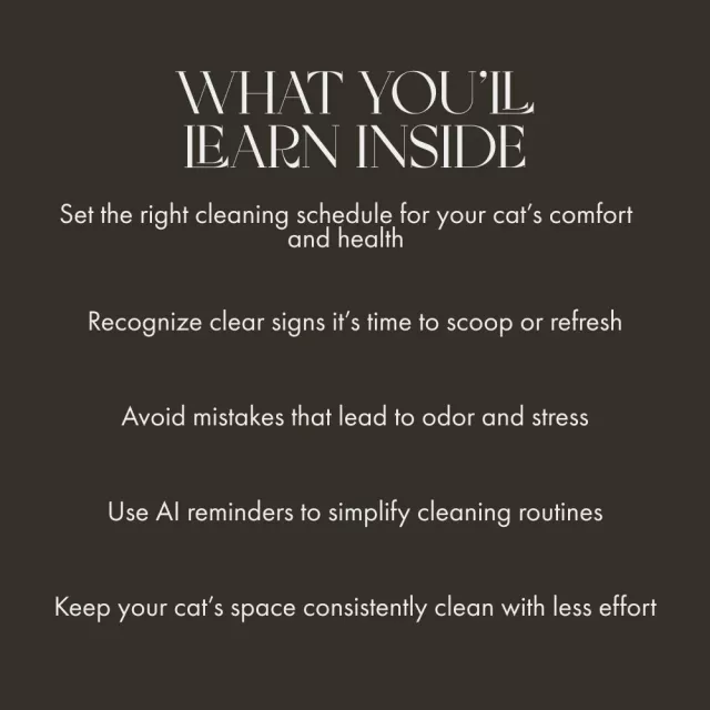 Bring order to your cat care routine and enjoy a fresher, cleaner home. Download “Litter Box Timing Made Simple” today and discover how easy and satisfying proper litter box maintenance can be!