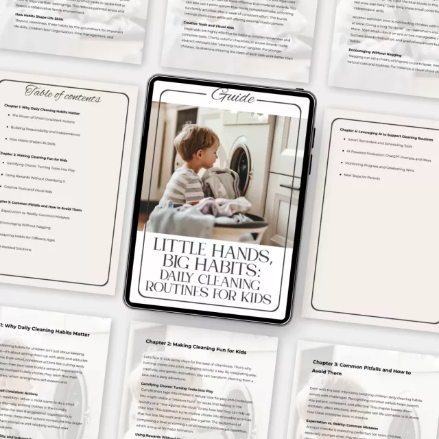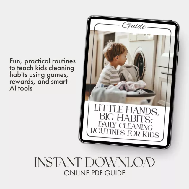 Turn everyday chores into powerful life lessons with Little Hands, Big Habits: Daily Cleaning Routines for Kids — a digital guide designed to help parents teach responsibility, independence, and consistency through practical routines. Whether you’re a busy parent or caregiver looking for ways to make cleaning fun and meaningful, this easy-to-follow guide is your secret to building strong daily habits that last a lifetime. Inside, you’ll find expert strategies, creative ideas, and even AI-powered tips for creating daily cleaning habits for children that stick!