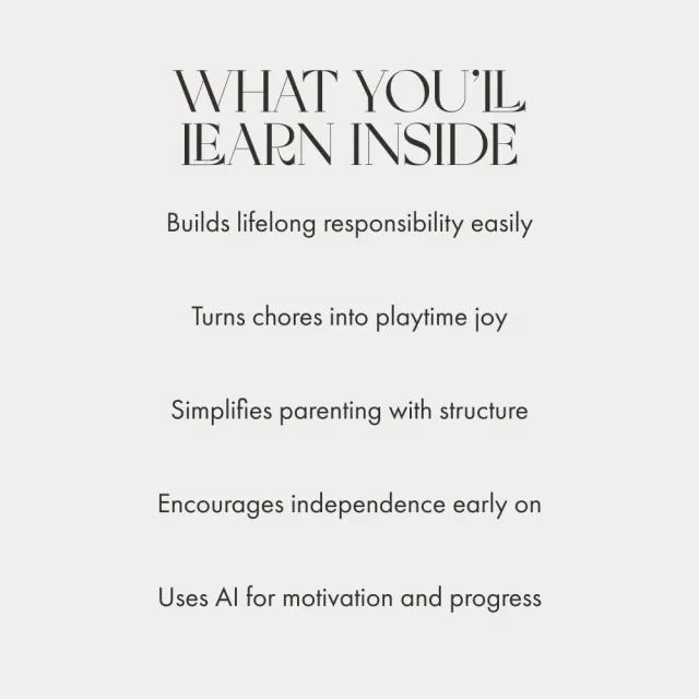 Unlike generic chore charts or simple checklists, Little Hands, Big Habits blends psychology, fun, and technology to make cleaning a meaningful part of your child’s day. It’s not just about tidy rooms — it’s about building character, confidence, and lifelong responsibility through structure and joy. The section on AI-Assisted Solutions adds a modern twist, helping you personalize reminders and motivation tools effortlessly.