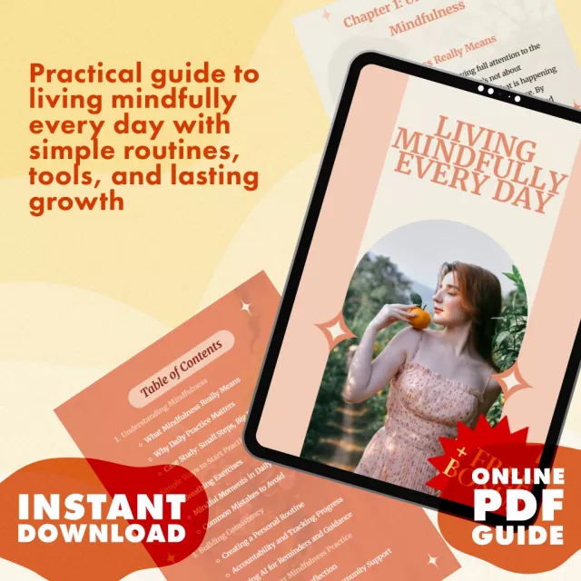 Discover how to practice mindfulness regularly with Living Mindfully Every Day, a beautifully designed digital guide created to help you slow down, focus, and live with intention. Whether you’re completely new to mindfulness or seeking practical ways to make it part of your daily routine, this guide provides clear steps, real-life examples, and supportive techniques that fit seamlessly into your lifestyle.