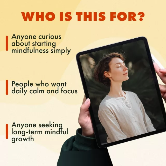 This guide is perfect for anyone curious about mindfulness but unsure how to start, as well as busy individuals who want realistic ways to make mindfulness a regular practice. It’s also great for those looking for fresh ideas to refresh their current mindfulness journey.
