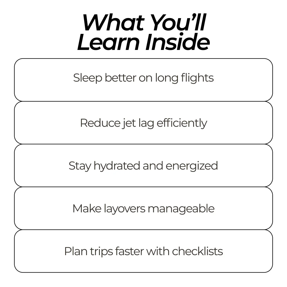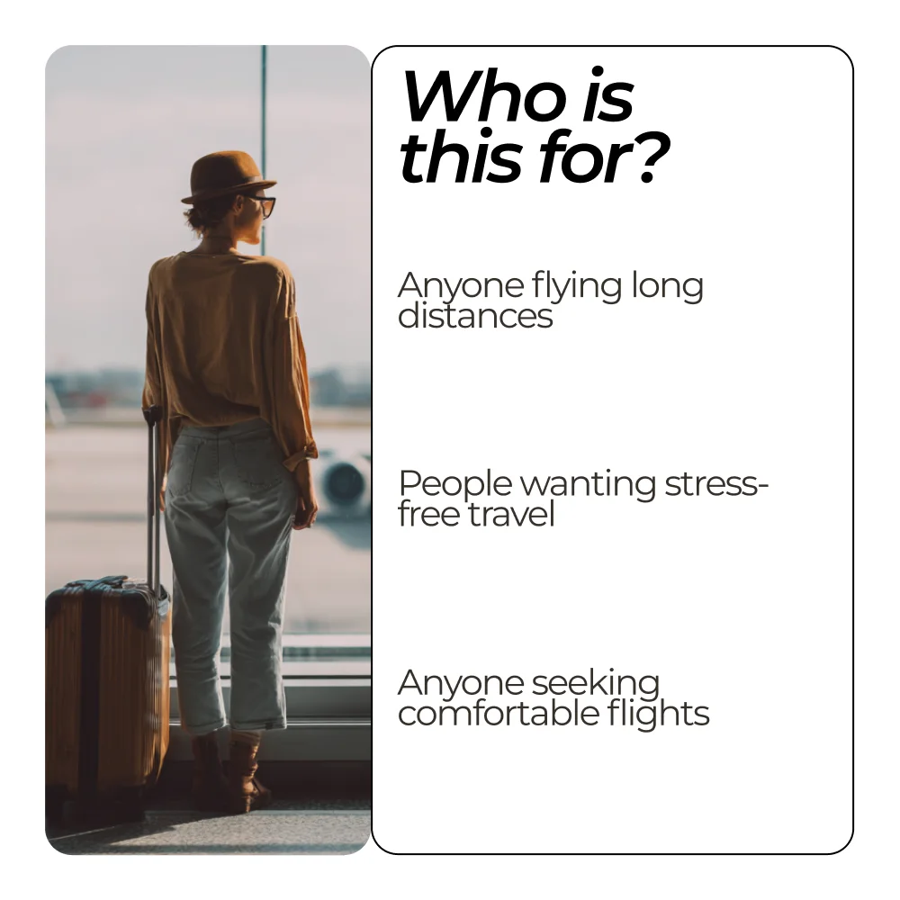 This bundle is perfect for frequent flyers, vacation travelers, digital nomads, business travelers, and anyone researching how to stay comfortable on long flights. It is especially helpful if you want simple systems instead of overwhelming travel advice.