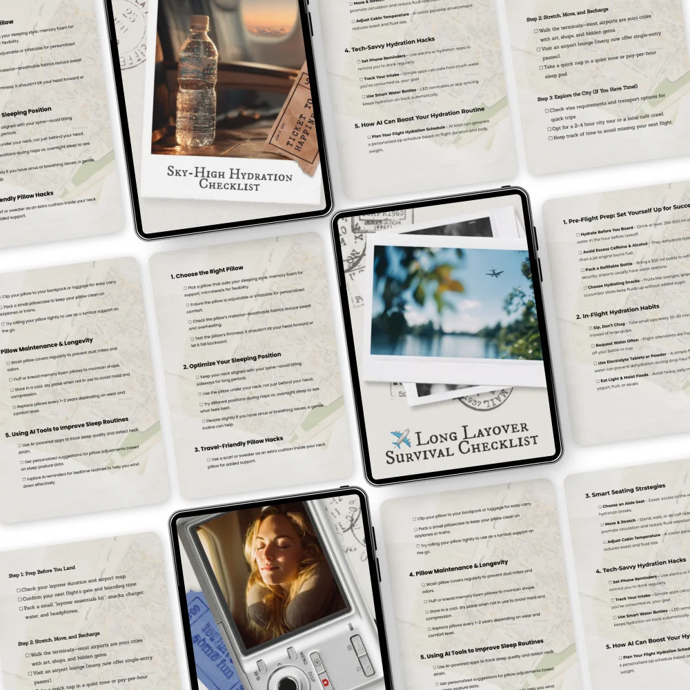 Unlike generic travel guides, this bundle focuses only on real in-flight comfort strategies. It combines traditional travel wisdom with modern AI planning tools, giving you both practical checklists and smart optimization tips. Every resource is designed to be quick to read, easy to apply, and immediately useful for your next trip.