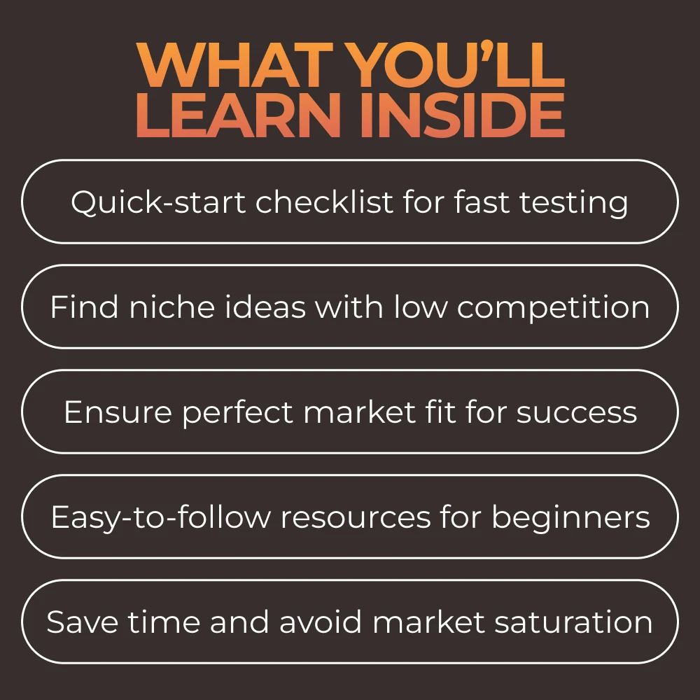 this product is amazing! It gives you the tools to test your niche ideas quickly with a quick-start checklist. no more second-guessing yourself or wasting time on ideas that won't work.