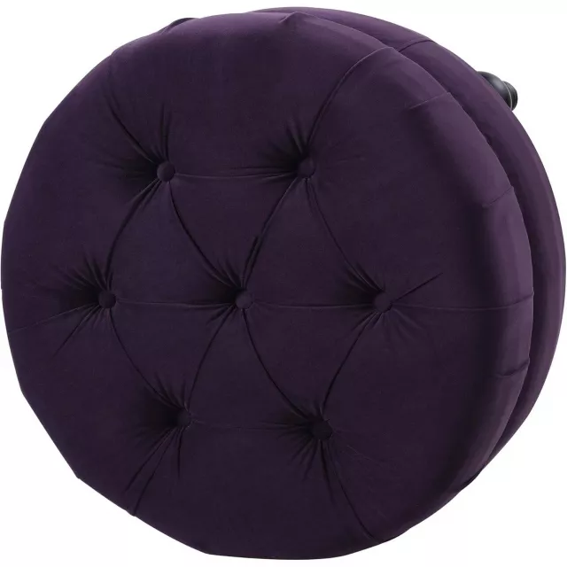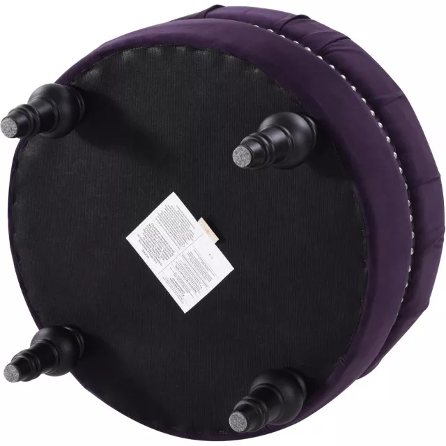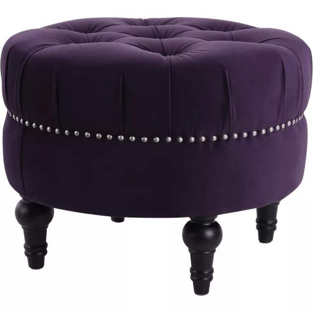 Bring a touch of luxury and charm into your living room, bedroom, or entryway with this eye-catching tufted round ottoman in plush purple velvet. The rich, jewel-toned fabric paired with hand-applied nailhead accents gives this piece a timeless elegance that enhances any décor—from modern glam to classic chic. Whether you’re looking for a comfortable footrest, extra seating, or a stylish accent piece, this ottoman is as versatile as it is beautiful.
