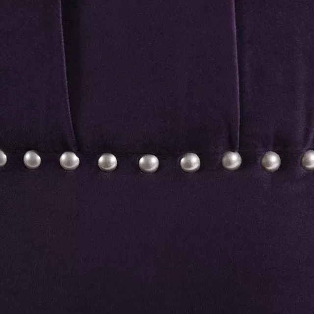 • Elegant design: Purple velvet upholstery with button tufting and nailhead detailing offers a luxe, polished look.