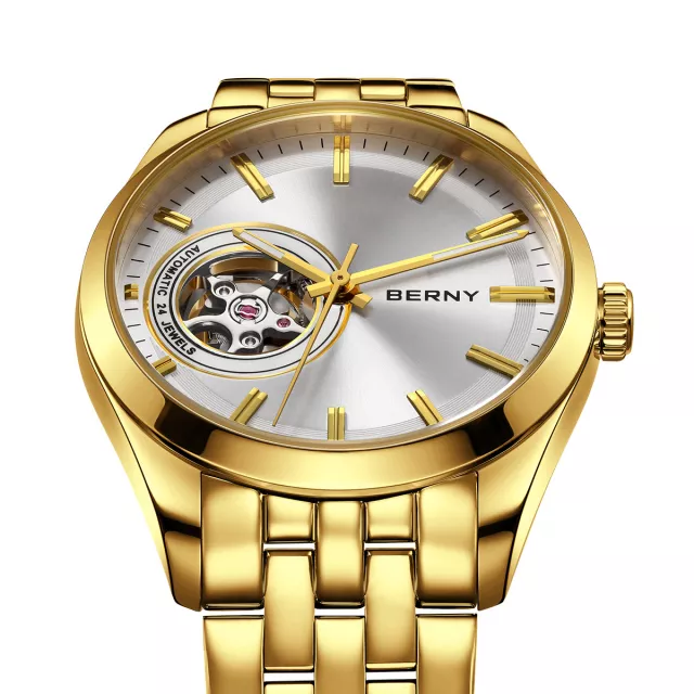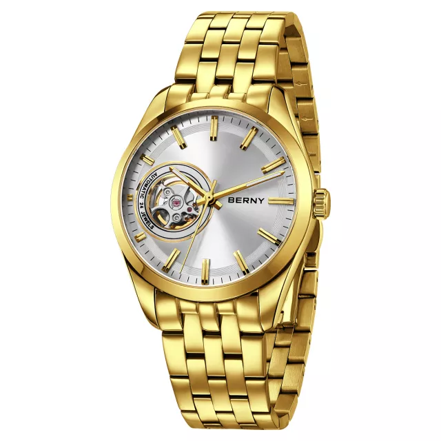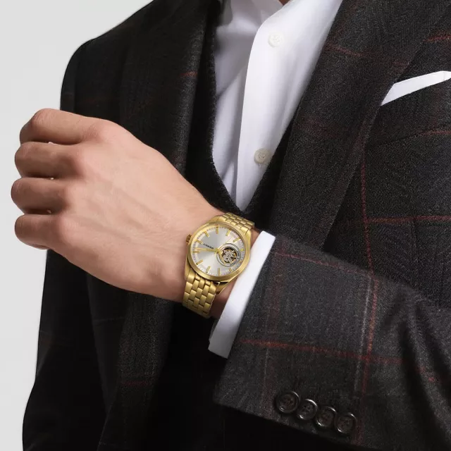 • Versatile Elegance: Gold skeleton dial enhances both casual and formal looks.