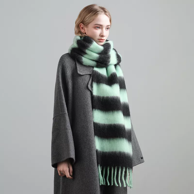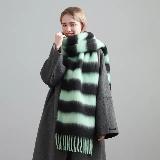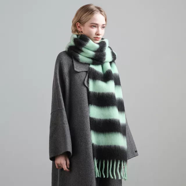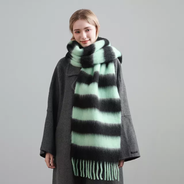The sophisticated striped design and delicate tassels elevate your winter wardrobe, adding a pop of elegance to both casual outfits and more formal attire. Whether you’re bundling up for a snowy day or adding an extra layer for an evening out, this scarf will be your go-to accessory for warmth and style.