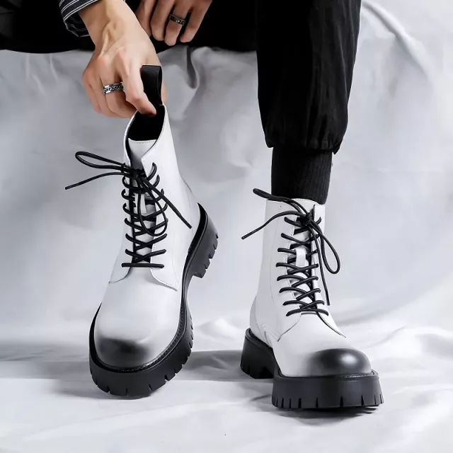 Upgrade your wardrobe with the new Luxury Designer Men’s Boots – the perfect balance of style, comfort, and durability. Crafted with premium split leather and a sleek lace-up design, these ankle boots are built for men who want to stand out while staying comfortable. The crisp white finish adds a modern edge, making them versatile enough for both casual outdoor wear and sophisticated dress occasions.