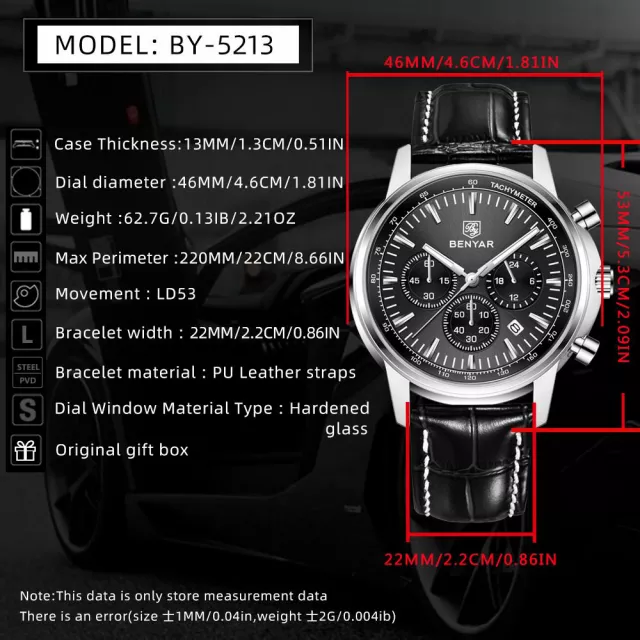What makes this watch special? The combination of a timeless design with cutting-edge features. The leather strap offers a premium feel, while the chronograph, luminous hands, and multiple time zones make it a highly functional companion. The sturdy stainless steel case and anti-magnetic properties ensure durability and reliability, while the water resistance depth of 5Bar means you can wear it during everyday activities without worry.