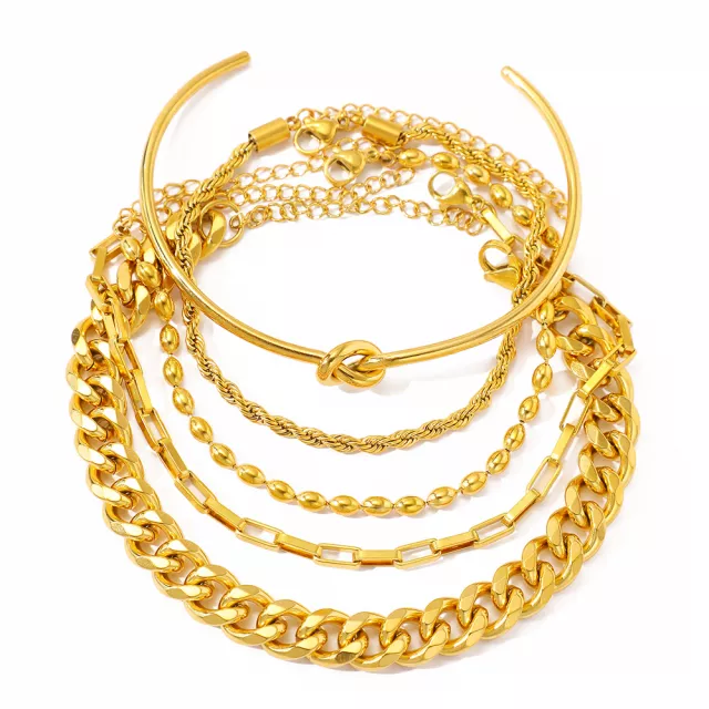 Elevate your accessory game with this stunning multi-layer stacked stainless steel bracelet. Designed for those who appreciate vintage charm mixed with modern flair, this bracelet effortlessly combines elegance and creativity. Its layered look adds depth and style, making it a standout piece for any jewelry collection.