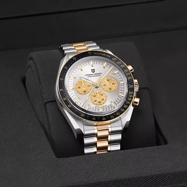 Step into a world where precision meets style with this stunning silver and gold moon chronograph watch. Designed for men who appreciate the art of watchmaking, this timepiece blends luxury aesthetics with robust functionality. Its luminous details, smooth chronograph operation, and scratch-resistant sapphire crystal make it more than just a watch — it’s a statement of sophistication and adventure.