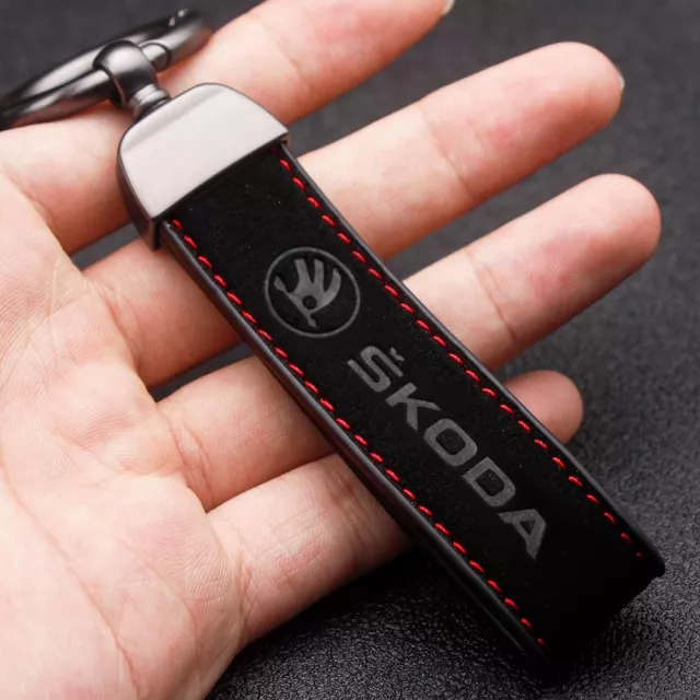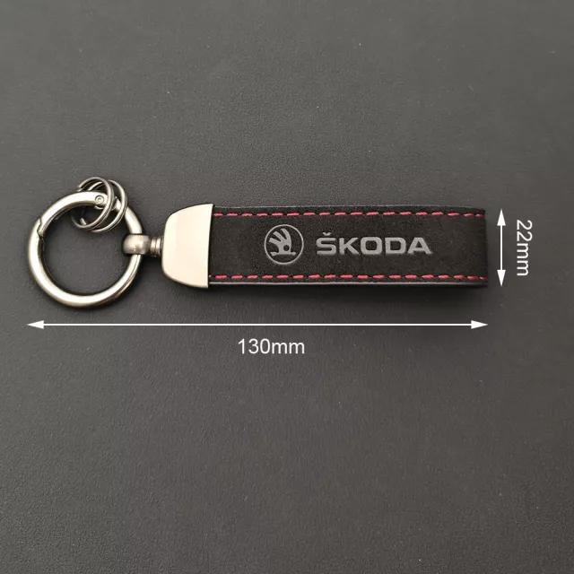 Luxury Suede Leather Keychain for SKODA Yeti, Karoq, Rapid, Kodiaq, Octavia, Fabia – Car Styling Accessory