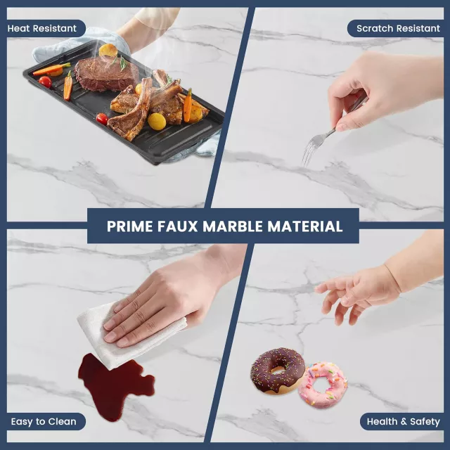• Modern Elegance: Luxurious faux marble top with a sleek rectangular shape and smooth edges