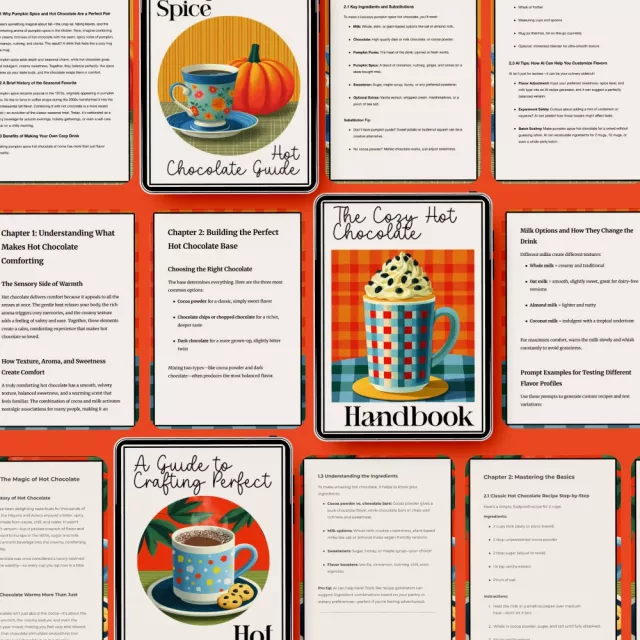 • The Cozy Hot Chocolate Handbook – Your go-to guide for crafting classic hot chocolate, including tips on how to make comforting hot chocolate from scratch, with ingredients you already have at home.