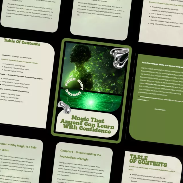 Magic is not about secret talents or being “born with it.” Magic That Anyone Can Learn With Confidence is a practical, beginner-friendly digital guide designed to show you exactly how magic works and how to build real skill from the ground up. If you have ever wondered how to learn magic tricks without feeling overwhelmed, this guide gives you a clear, structured path from curiosity to confident performance. You will learn not only tricks, but the thinking, practice habits, and performance skills that make magic feel real to an audience.