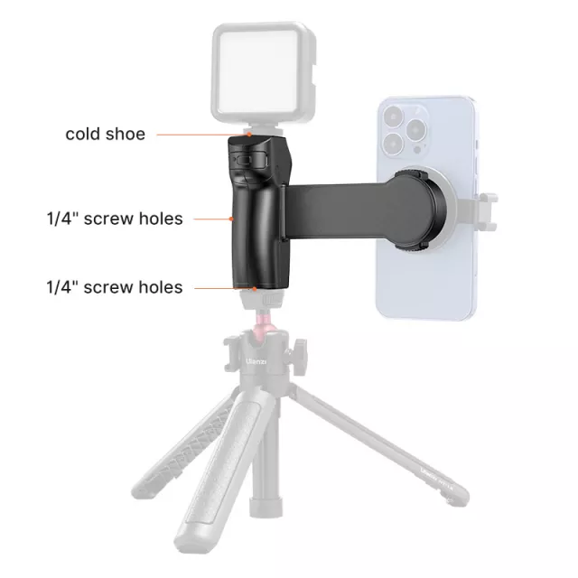 Take your mobile photography and videography to the next level with this versatile MagSafe Smartphone Stabilizer Grip. Designed for both iPhone and Android users, this compact and lightweight handle ensures you get steady, professional-looking shots whether you’re vlogging, streaming, or capturing memories on the go. Its ergonomic design provides comfort during long shooting sessions, while the built-in cold shoe and 1/4″ screw holes open up endless possibilities for adding accessories like lights, microphones, or tripods.