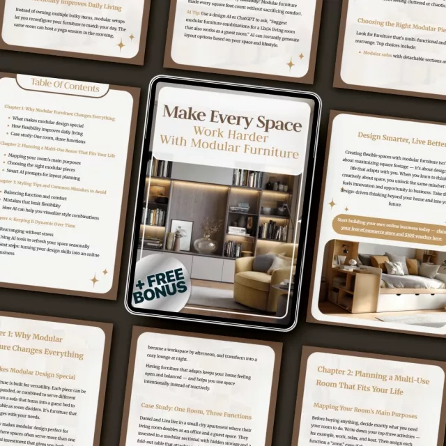 • Chapter 1: Why Modular Furniture Changes Everything – Understand what makes modular design so special, how flexibility enhances daily living, and explore a case study showing one room serving three unique functions.