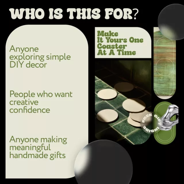 This ebook is for DIY beginners, home decor lovers, creative hobbyists, and anyone looking for a relaxing, rewarding project. It’s especially helpful if you’ve ever felt intimidated by crafting or unsure where to start. Unlike generic craft guides, this diy coaster making tutorial blends practical instruction with mindset-building, real examples, and modern tools like AI for inspiration. It meets you where you are and helps you grow at your own pace.